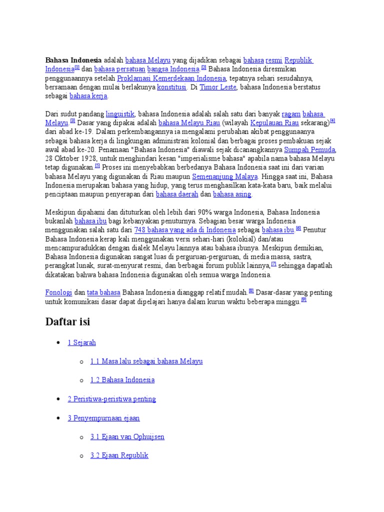 Portal halaman depan negara republik indonesia di dunia maya. .bahasa indonesia merupakan acuan bagi ahli bahasa dan masyarakat yang berpendidikan dalam menentukan bentuk bahasa baku resmi bab ii tata bahasa : Sejarah bahasa indonesia tak lepas dari perjalanan panjang hingga mencapai peresmiannya. Sedangkan dalam kedudukannya sebagai bahasa negara, fungsi bahasa indonesia adalah sebagai bahasa resmi kenegaraan, bahasa pengantar pendidikan, alat perhubungan tingkat nasional dan. Bahasa indonesia diadopsi dari bahasa melayu yang telah banyak mengalami perubahan.
