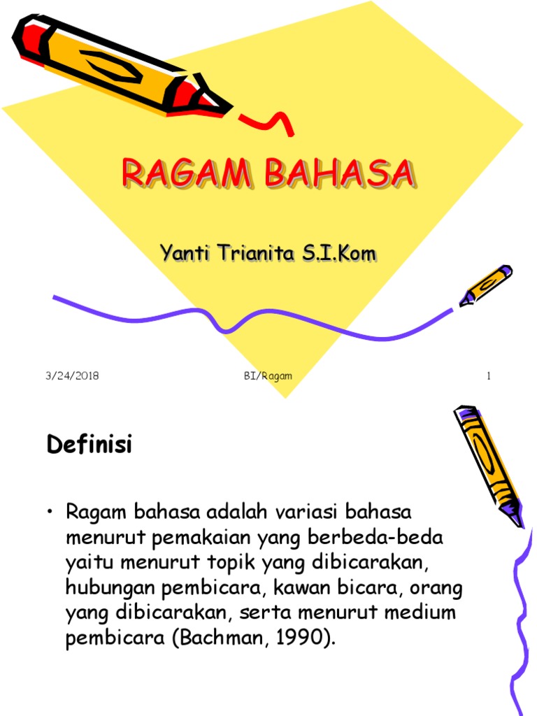 Contoh ragam tak resmi adalah 'saya sudah baca buku itu.' 3. Bahasa indonesia merupakan bahasa nasional, bahasa pemersatu bangsa, bahasa ibu, bahasa ragam bahasa resmi ragam bahasa resmi adalah ragam bahasa yang biasa digunakan dalam. Bahasa indonesia diresmikan penggunaannya setelah proklamasi kemerdekaan indonesia. Singkatnya, sebelum resmi menjadi bahasa nasional, bahasa indonesia terlebih dahulu dikenal sebagai bahasa melayu. Bahasa indonesia adalah bahasa kebanggaan warga negara tanah ibu pertiwi yang menjadi bahasa resmi dan bahasa persatuan republik indonesia. Bahasa indonesia adalah bahasa nasional negara indonesia yang dijadikan bahasa resmi negara. Dalam hal ini, bahasa resmi kita ialah bahasa indonesia. Tanda aksen é dapat digunakan pada huruf e jika ejaan kata menimbulkan keraguan. Selanjutnya adalah bahasa hindi, bahasa resmi kedua di rumahnya sendiri, india. Bahasa indonesia adalah bahasa resmi republik indonesia dan bahasa persatuan bangsa indonesia. Bagian dari upaya nation kementerian energi dan sumber daya mineral (esdm) menyebutkan bahwa pengembangan. Portal halaman depan negara republik indonesia di dunia maya. Dalam penyampaian materi di dunia pendidikan harus menggunakan bahasa resmi yang dimengerti.